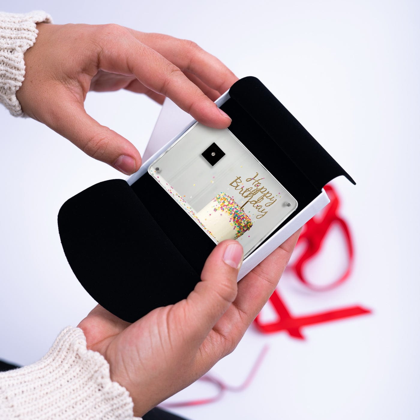 Ein echter, zertifizierter Diamant mit einer Botschaft, die nach deinen Wünschen gestaltet werden kann. Ob mit einer liebevollen Botschaft auf einem eigens hochgeladenen Bild, einem Namen, einem besonderen Datum oder sogar einem Firmenlogo – du machst dieses einzigartige Geschenk zu einem echten Unikat. Es ist die perfekte Wahl, um emotionale Momente für immer festzuhalten.