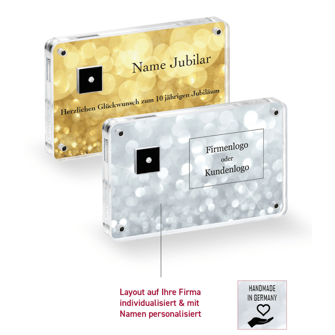 Einen echten Diamanten in Ihrem individuellen Firmendesign! Überraschen Sie Mitarbeitende oder Kunden zu besonderen Anlässen mit einem Präsent, das einen starken Eindruck hinterlässt.